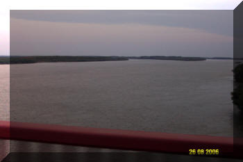 | Zwischen Giurgeni und Vadu Oii überqueren wir wieder einmal die Donau, die hier so richtig breit ist. Auf der Brücke ist eine Maut fällig, (ca. 1,50 EUR) | ||