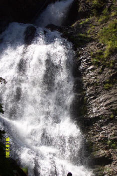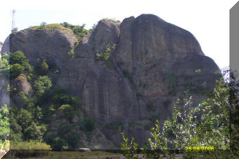 | Diese markante Felsformation begleitet und bei einem Spaziergang zum oberen Teil der Wasserfalls. |