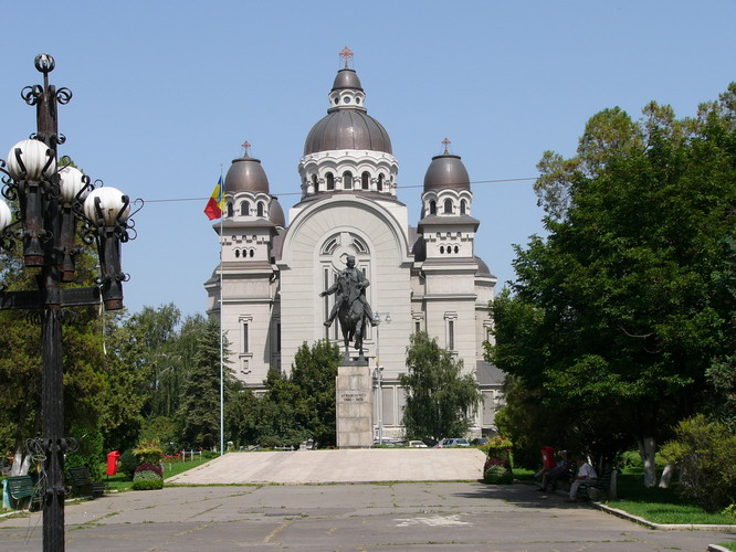 Der Weg zur Stadt führt an der orthodoxen Kathedrale vorbei, der wir zuerst einen Besuch abstatten, dann geht's über eine Fußgängerbrücke, (gestern Abend haben wir sie in der Dunkelheit nicht gesehen), und schon sind wir in der Stadt. |