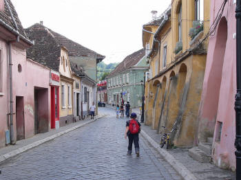 Rupea (deutsch Reps) Raps, eine der Städtegründungen der Ansiedlungszeit, liegt an einer der Hauptverkehrsadern, die aus dem Burzenland nach Nordsiebenbürgen führt - an der Verbindungsstrasse zwischen Brasov / Kronstadt und Sighisoara / Schäßburg - war also nicht nur Handelszentrum und Umschlagsplatz der achtzehn freien Stuhlsgemeinden, sondern ein wichtiger, von einer großen Fliehburg geschützter strategischer Punkt. Ihre auf dem Kohalmer Berg breit hingelagerte Ruine beherrscht noch heute die Stadt als Wahrzeichen und Mahnmal. |
