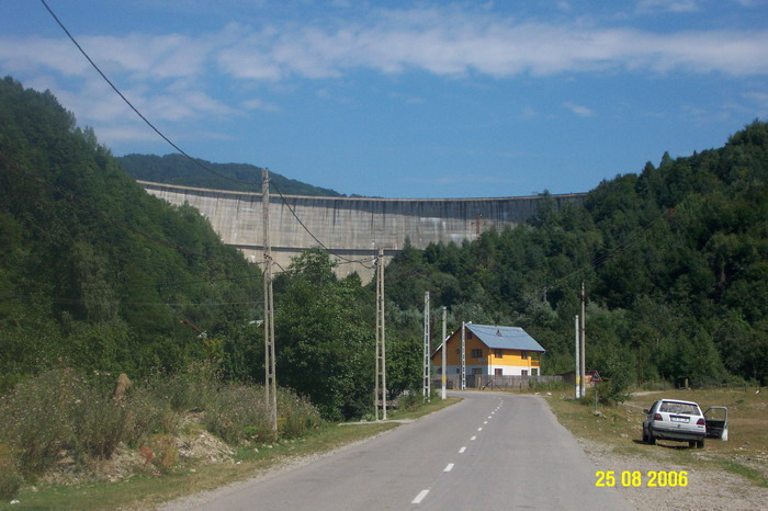 Staumauer des Stausees "Paltin" auftaucht. Komisches Gefühl in der