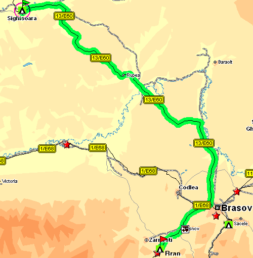 Brasov Eigentlich wollten wir hier einen kurzen Bummel machen. Aber in Anbetracht des chaotischen Verkehrs lassen wir diesen Gedanken schnell wieder fallen. Quälend langsam geht es durch die Stadt in Richtung Südwesten. |