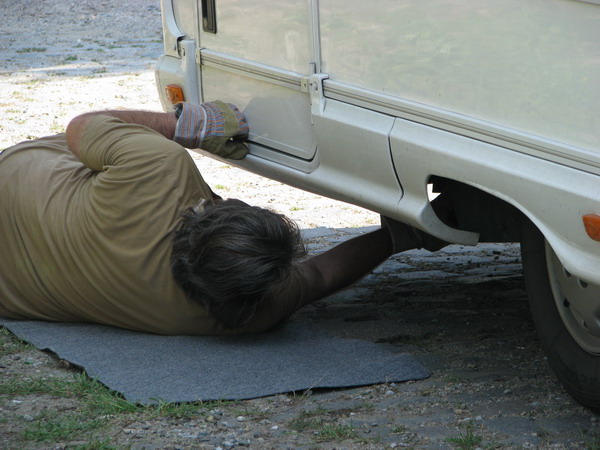 doch mal nachsehen, wo es unter dem WOMO so laut klappert. |