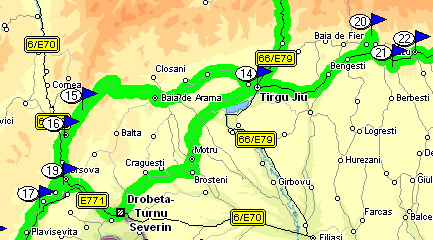 der Stadt in Richtung Targu-Jiu Die Strasse Nr. 67 ist sehr gut zu befahren. |