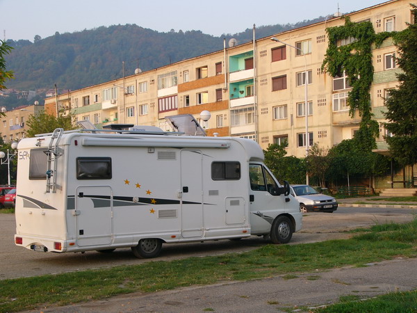 Die Sonne geht bald unter. Wir fahren durch Buzau. Kein Platz weit und breit. Es fällt uns der Platz in Sarata Monteoru ein, wo wir letztes Jahr waren. Also hin. Zu unserem Erstaunen ist der Campingplatz komplett leer, aber geöffnet. Wir suchen uns einen Platz und verbringen eine ruhige Nacht. |