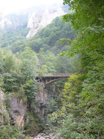 | Kloster Polovragi mit der Cheile Oltetului im Hintergrund |